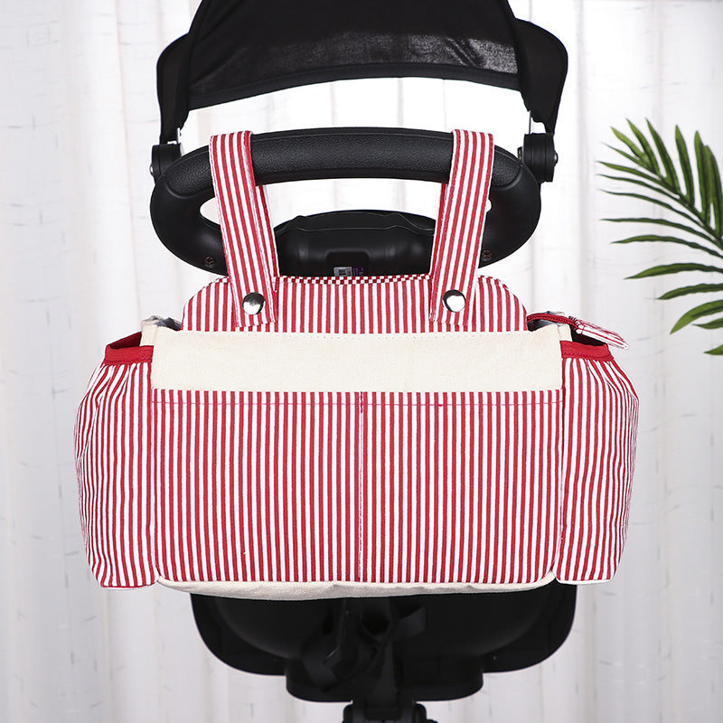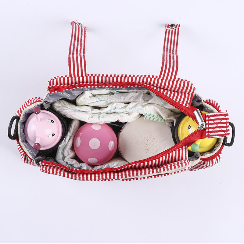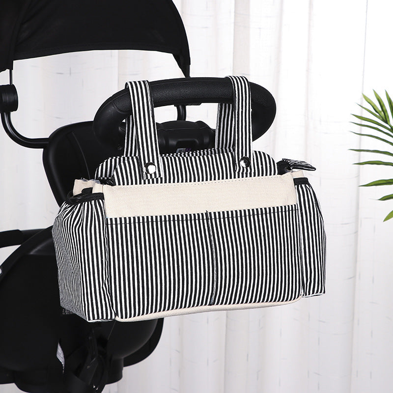Skötväskan är designad för att enkelt fästas på barnvagnen och frigöra dina händer, så att du kan fokusera på att umgås och leka med ditt barn. Den tjocka och robusta tygkvaliteten gör väskan hållbar och tålig för dagligt användande.