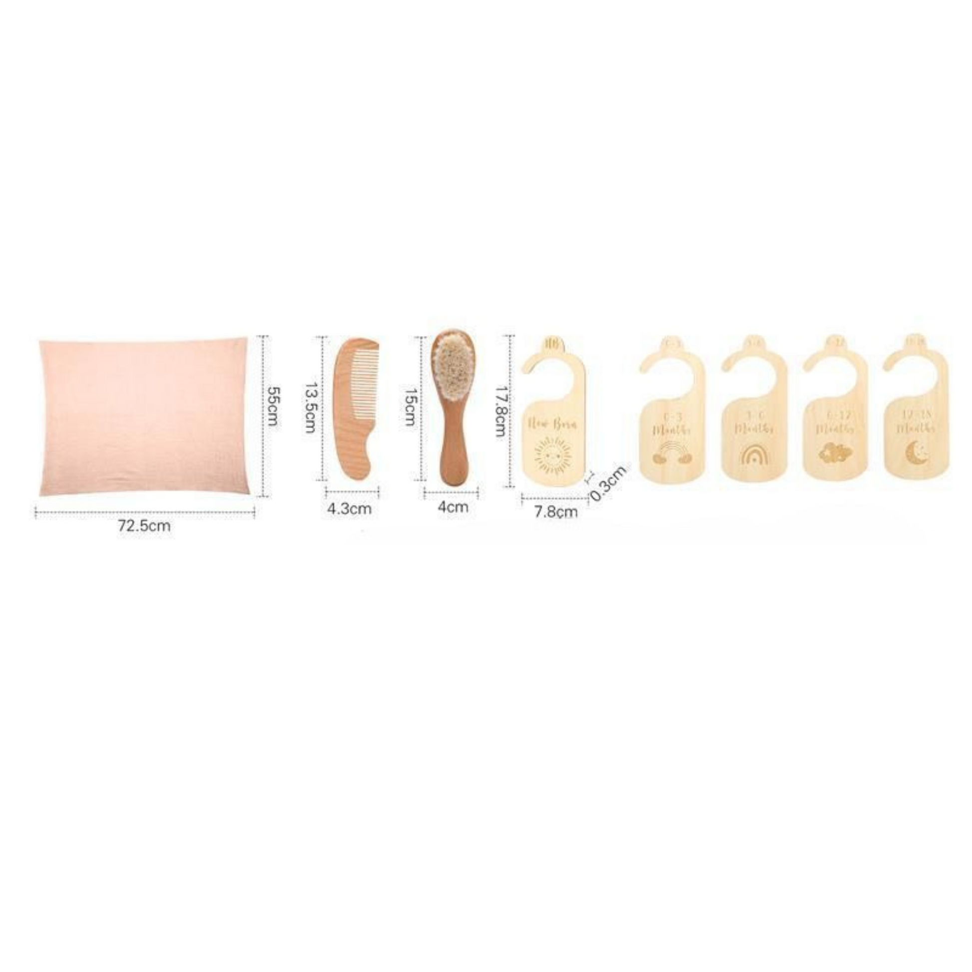 Lyxigt bebis presentset – Mjuk badhandduk & träborste för känslig bebis hud