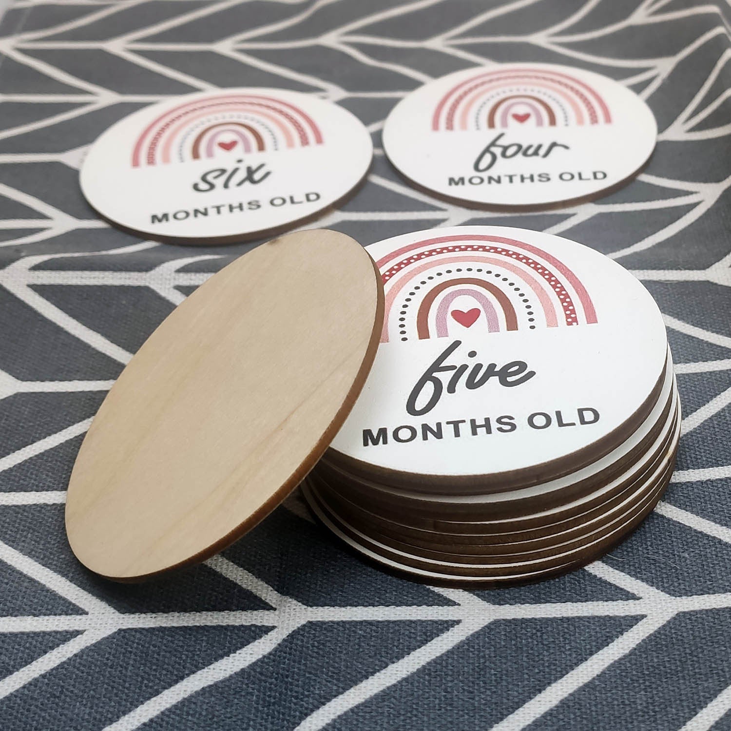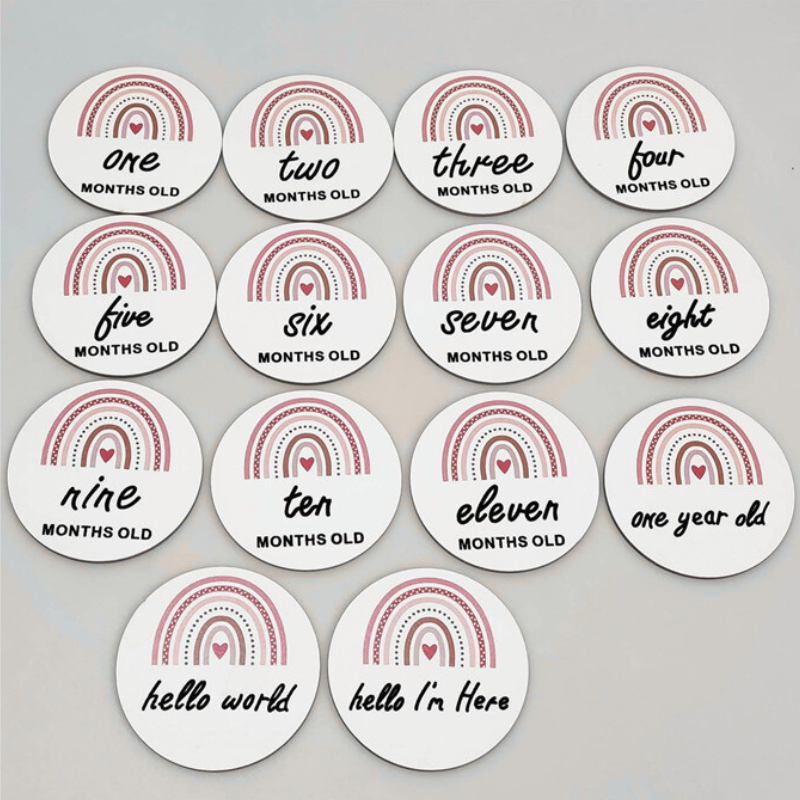 Föreviga varje månad av ditt barns första år med våra vackra babykort i trä.