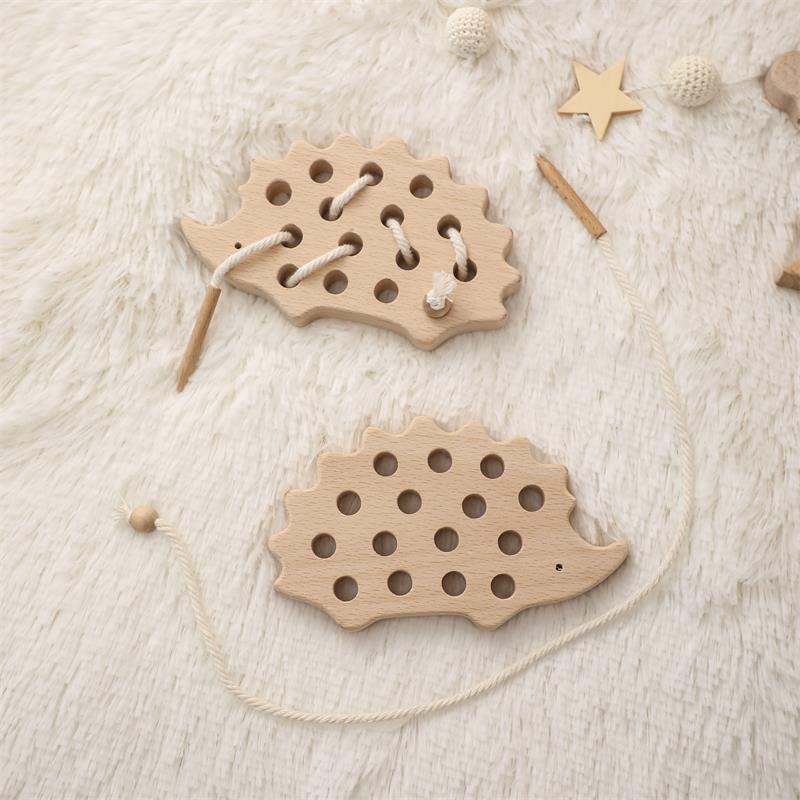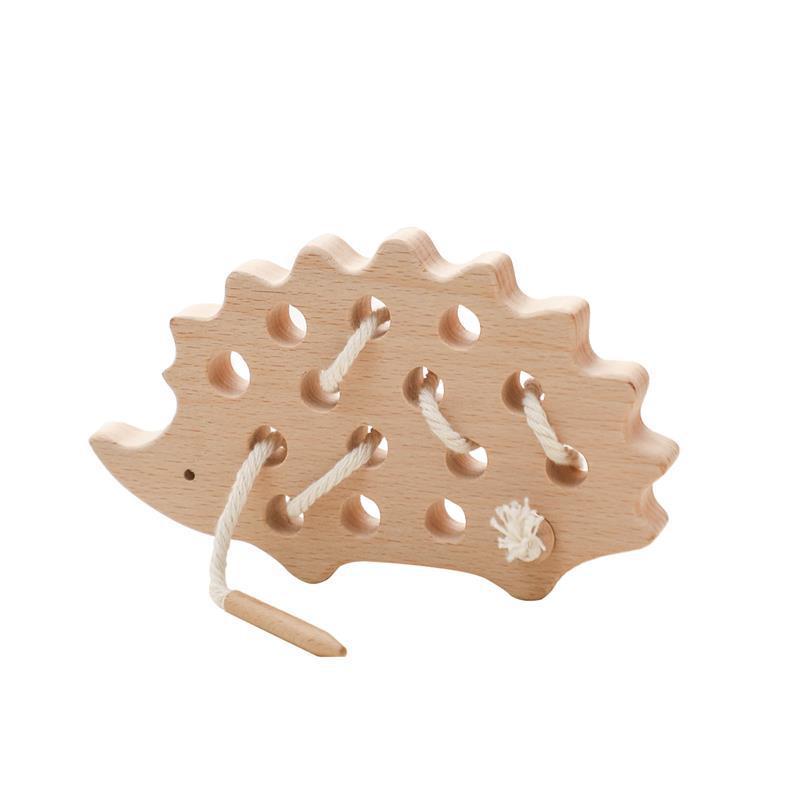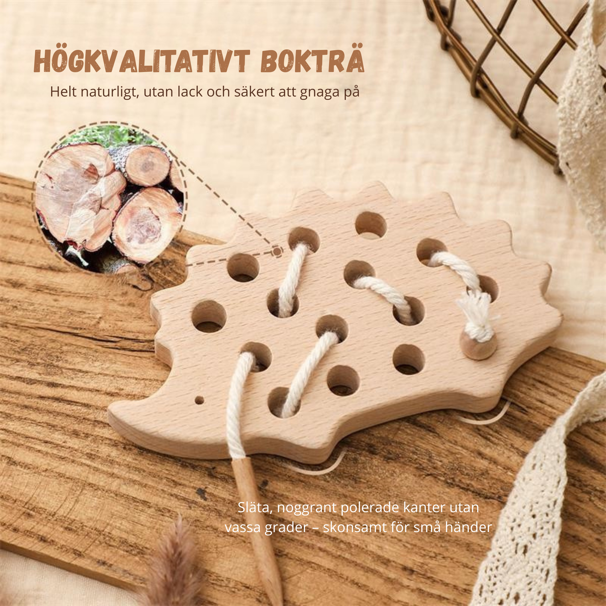 Träleksak med snörning – igelkott för tidig kognitiv utveckling