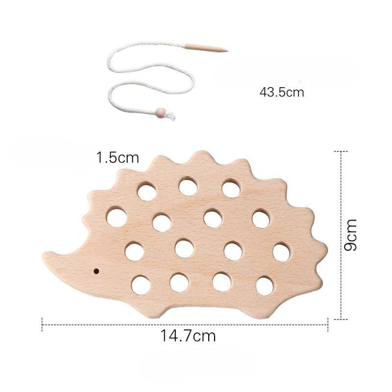 Låt ditt barn upptäcka glädjen i lek och lärande med denna charmiga träleksak i form av en igelkott! Den här snörningsbrädan är perfekt för barn mellan 4 och 6 år och tränar finmotorik, koncentration och problemlösning på ett roligt sätt.