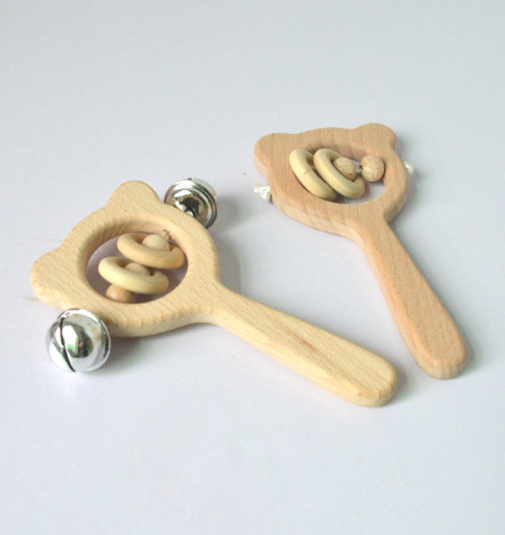 En trygg och tidlös babyleksak i naturligt trä som passar perfekt från första stund. Denna skallra är handgjord med ett greppvänligt handtag i alm – helt utan färg eller kemikalier – och finns i två varianter: med eller utan liten bjällra som stimulerar barnets hörsel.